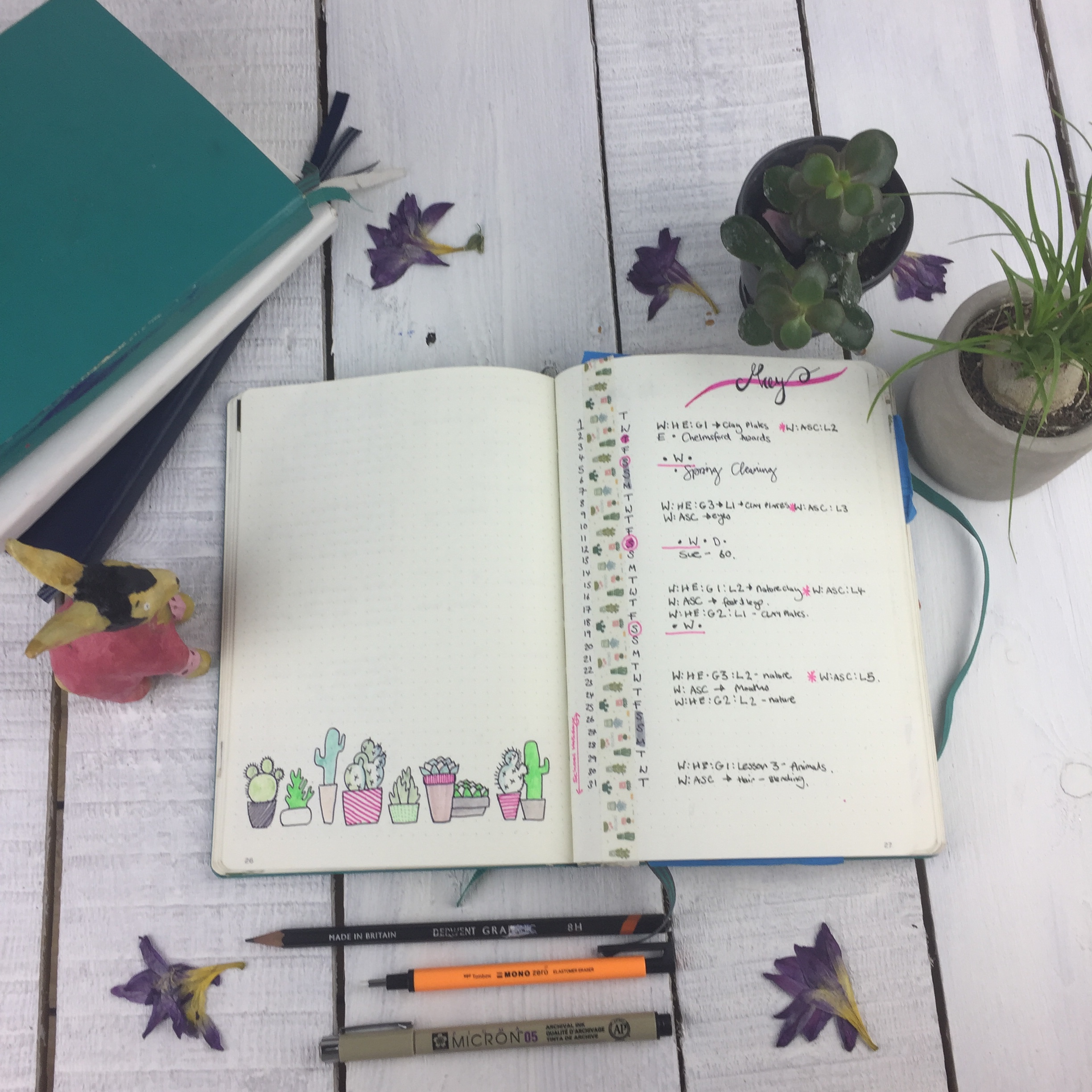 Again this is me seeing my month at a glance. This is especially good for planning my weekends, birthdays and other event. I always write when I have a workshop planned, parties just everything. When my friends meet up for a meal every so often, I can tell them when I am free. I am more likely to put in in my Bullet journal then in my phone.
