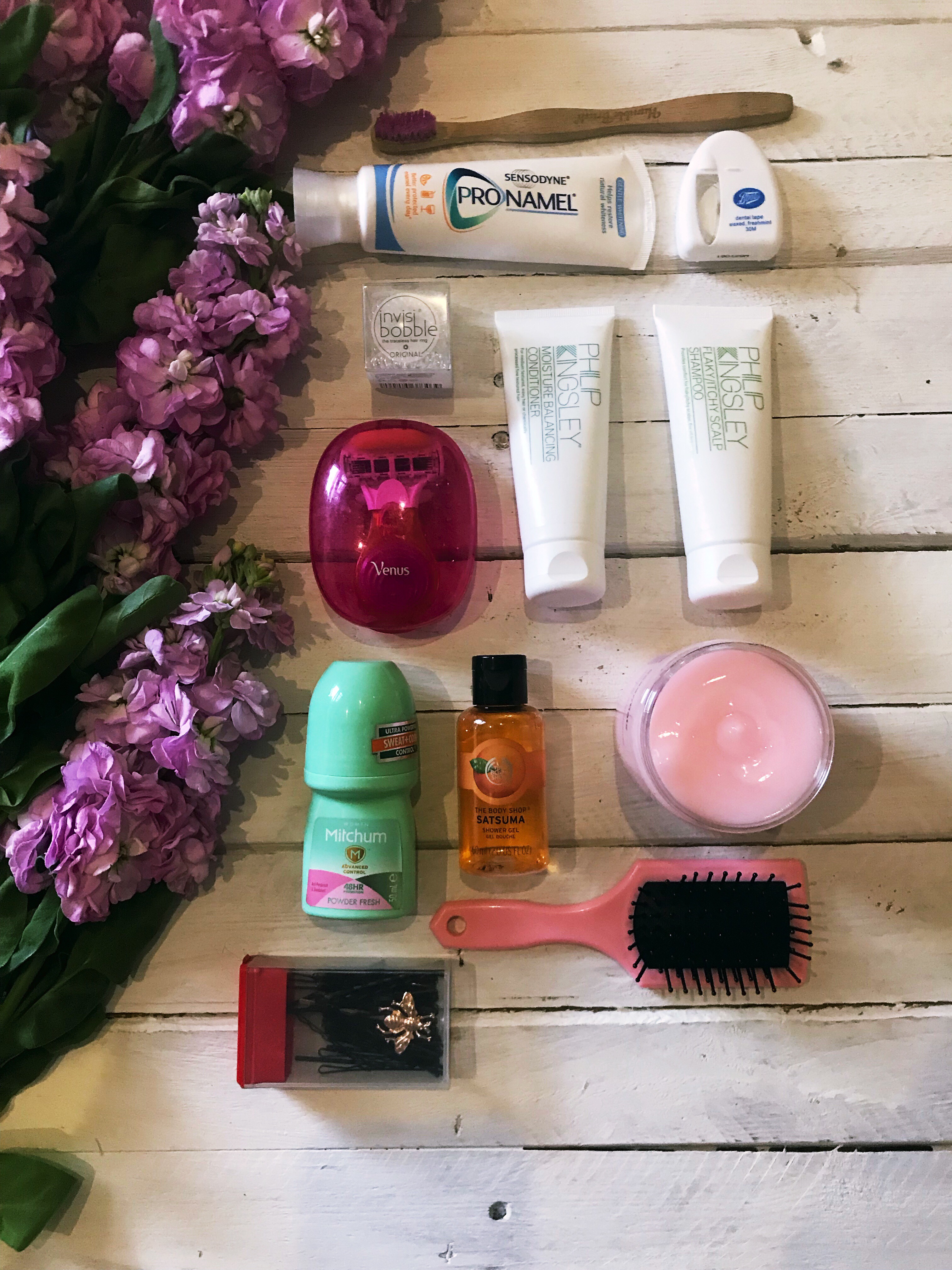 I have a shower gel mini from the body shop which is heaven and for my hair I will be taking my new Philip Kingsly trio, my boots cream or Sainsburies hair gel ( can’t believe it’s 50p) decanted and a body lotion for hydration.
