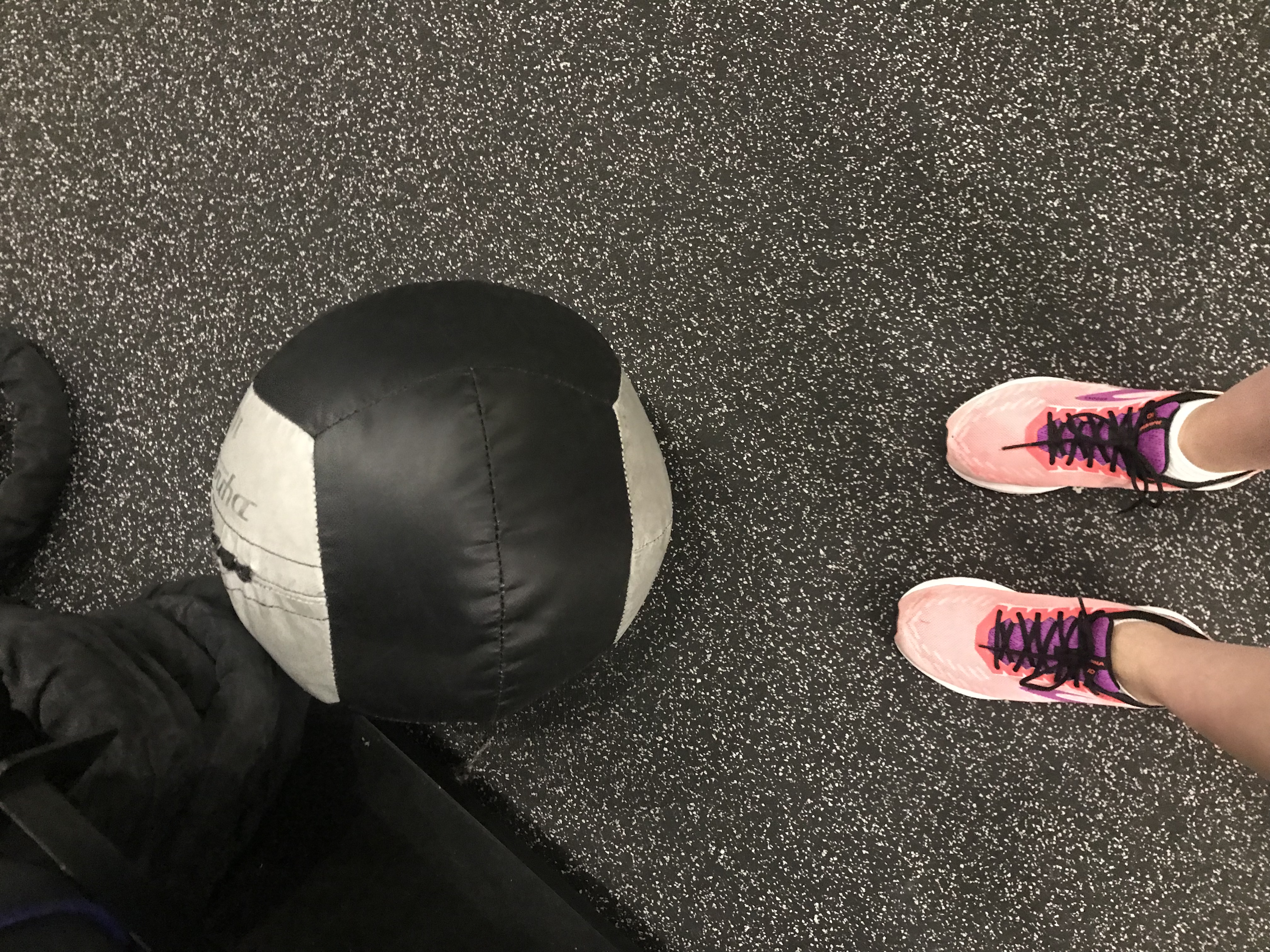 He made me bounce a 5 kilo medicine ball over my head then on each side of me. The coordination guru in my was obviously amazing at this. Or not. But I could barely lift the 10 k ball. So I tried and have massive room for improvement.