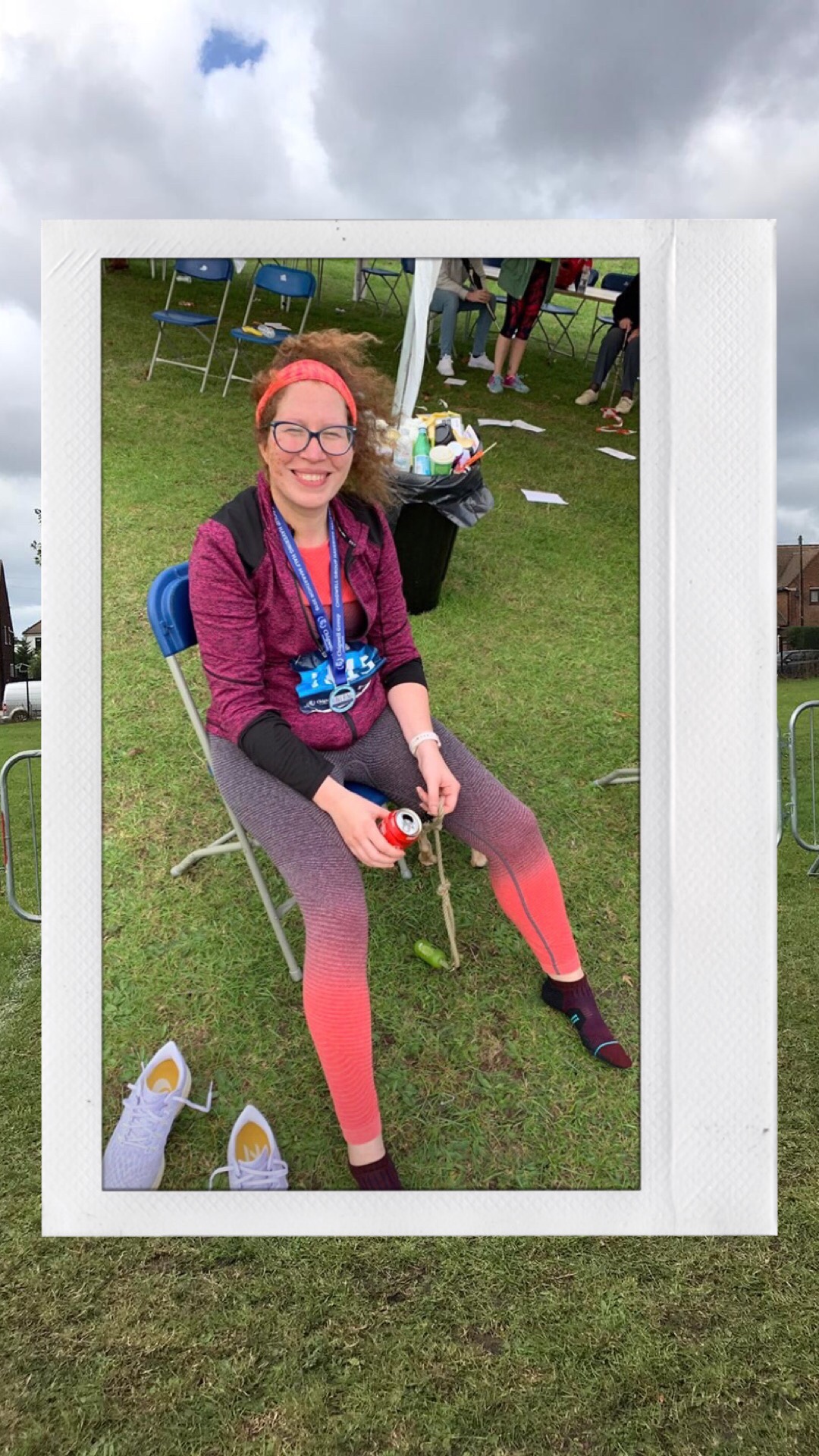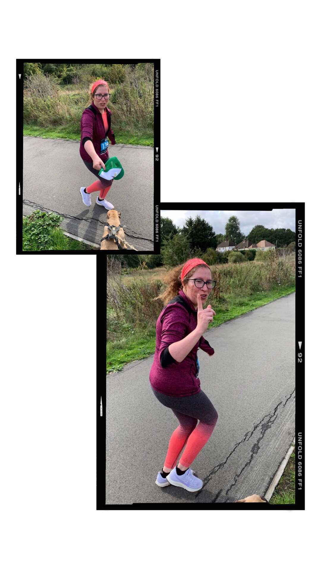 We had to go through streets which had people cheering us on which was nice and encouraged me to run at these points. My foot was aching and when I walked I limped so it was easier to run. As I turned the corner I saw my husband and dog cheering me on. I passed him my cap and a single tear ran down my face. We were at mile 9 and I was still running!