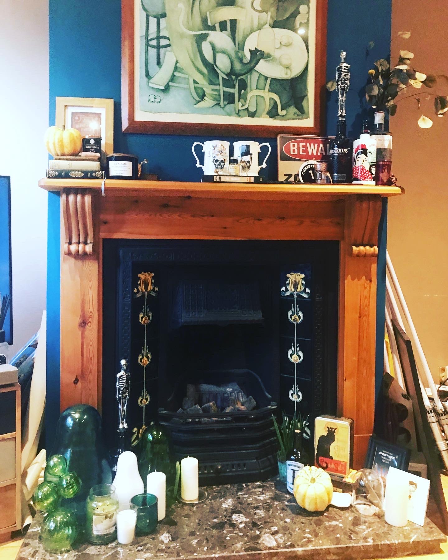 Getting the sitting room ready for Halloween was so much fun but also it needed it. Our fireplace had become a dumping ground so I needed a good deep clean!
