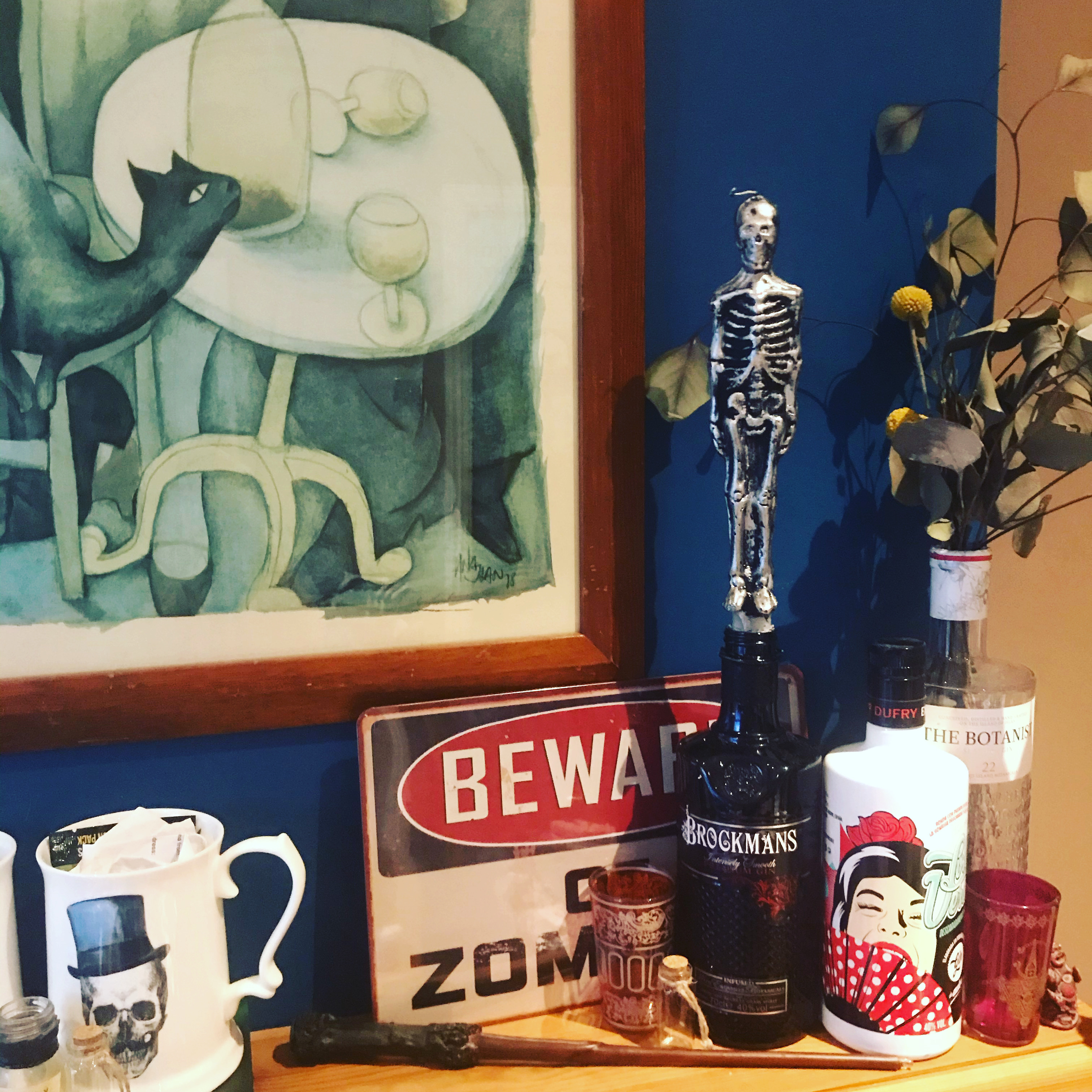 The dried flowers are from my wedding bouquet as is the Harry Potter wand and the Brockmans gin bottle.