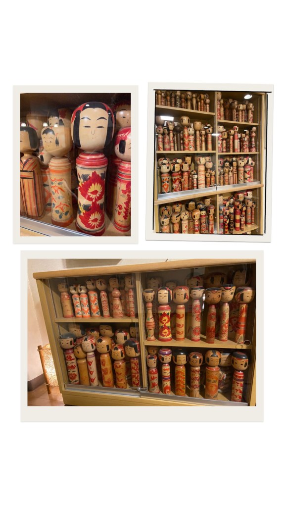 In our vast and winding hotel in Yamagata we discovers Kokeshi dolls. They had cabinets full of them and I oved the display. These Wooden dolls that are hand painted with beautiful flowers and expressions. The original Kokeshi dolls were connected to the mountain gods and were said to bring fortune such as health recovery and good harvest to them. So what better reminder of my time on the mountain then 3 lovely wooden dolls.