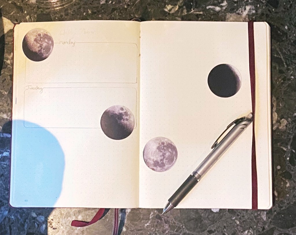 I have to form a plan otherwise I feel listless. So I thought I would show you my weekly spread. I randomly placed my new moon stickers that I totally love.