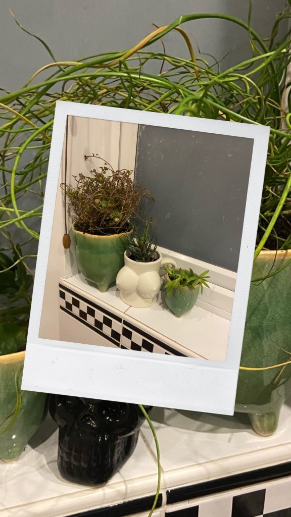We already no I am crazy plants lady. I name them talk to them and try, sometimes successfully to propagate them to make more plants. Last month I bought some new pots and this month I stopped procrastinating got off my lazy arse and actually reported my bathroom plants.