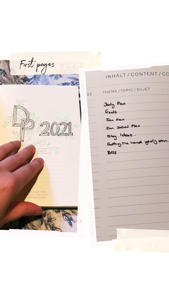 First pages are doodle pages!! I draw whatever I choose and don’t put much thought into it. I can guarantee that I will stop using the contents page in a few months. I use my Bullet journal for everything. Plans, diary, notes, house updates. I like all the info in one place. If I I need to right a shopping list, I use the back or rewrite it in a notepad to take with me.