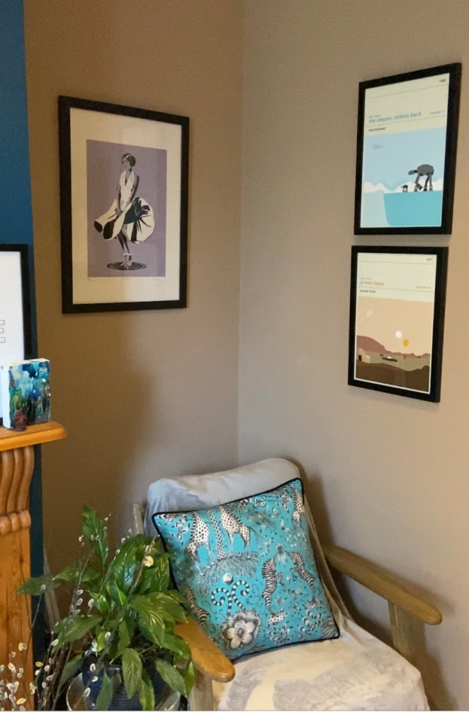 If it isn’t to your taste then put it in a place you don’t often look at but your partner can. I like Star Wars too, I don’t want a theme room or house. so instead of hiding it away. Gavin often gets Star Wars gifts we have 3 amazing prints gifted to him and they are pride of place in our living room.