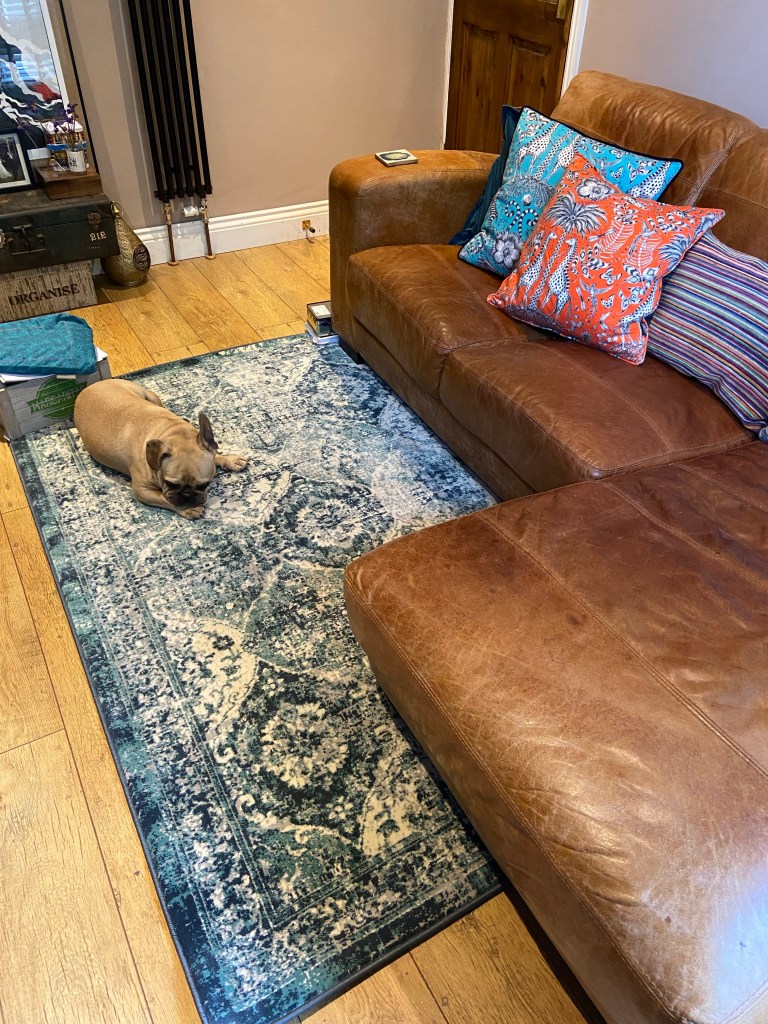 It feels wonderful on the feet and it’s strange that we have never had one before. It was £40 so a complete bargain for a rug this size. It’s easy to clean and spruces up the sitting room. You can see how small our living room is, perfect for us 3.