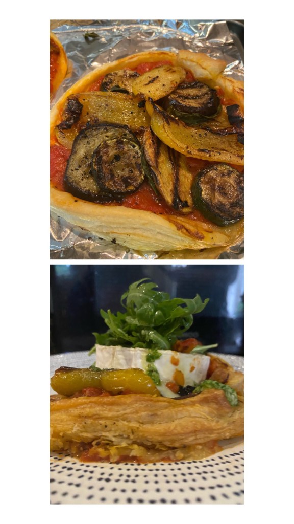 The vegetable tart was going so well. I made the yummy pesto and the tomato sauce. When the vegetables had been char grilled I was feeling confident. I cut the pastry into perfect circles and even chilled it for 15 minutes to keep the puff nice and cold.