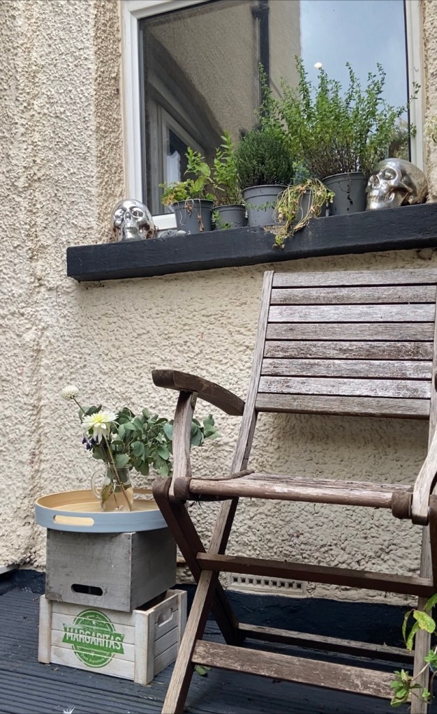 My sitting room is a little oasis that once I sit in it I don’t really want to move. So it’s not an ideal place to have a cup of tea because I just want to stay all day. After painting g the decking and playing around with my plants I have created a little space just outside the garden for a cup of tea and a French bulldog at my feet. I love it.