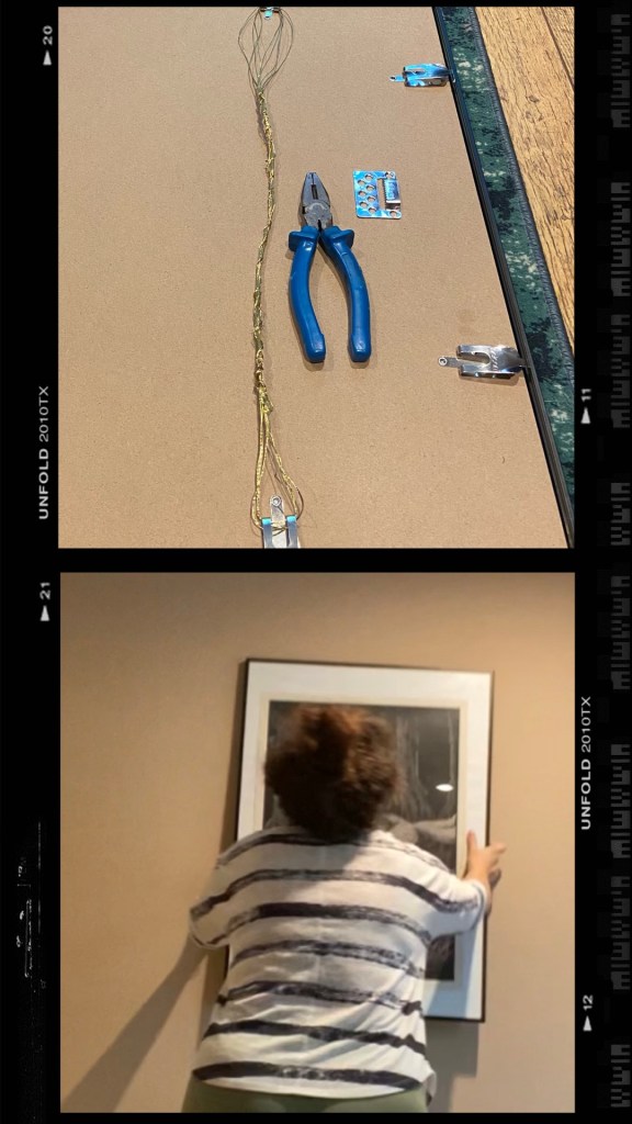 procrastinating is such a waste of time. My picture has been sitting here for over a month. I found the wire and brought it into the sitting room to hang and it’s just been sitting there. It took me a few minutes to fix and now it’s on the wall. I need to hang the rest of the pictures a few pieces of art work I have created myself.