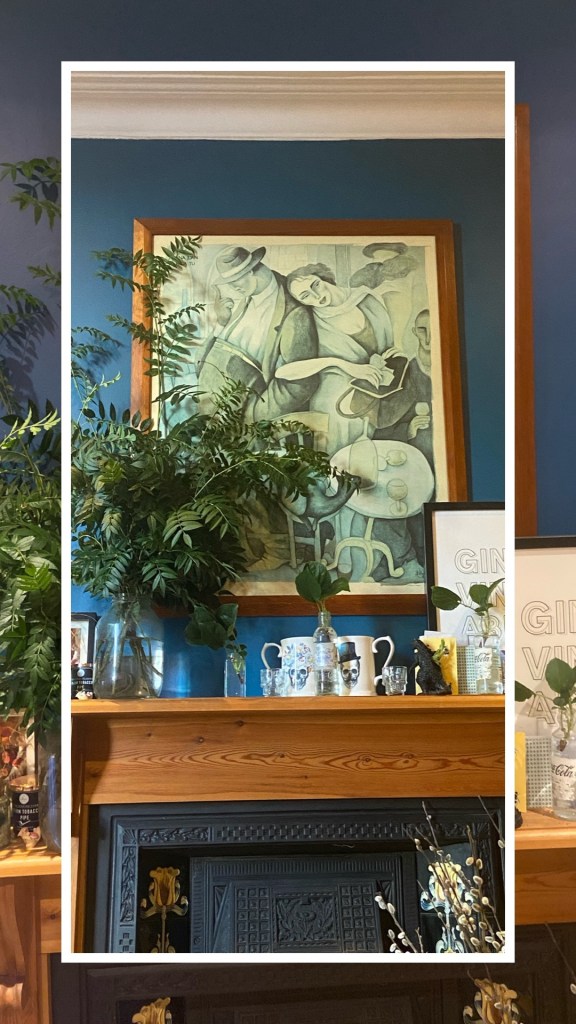 I could have thrown it on my compost bin but instead I decided to bring a bit more of the outside in and instead display it on my mantle piece. It’s beautiful. The shape of the leaves and the rich greens make it the perfect display for the sitting room. I also popped the hydrangea prunings into some old bottles and jars. I am not expecting them to grow but you never know!
