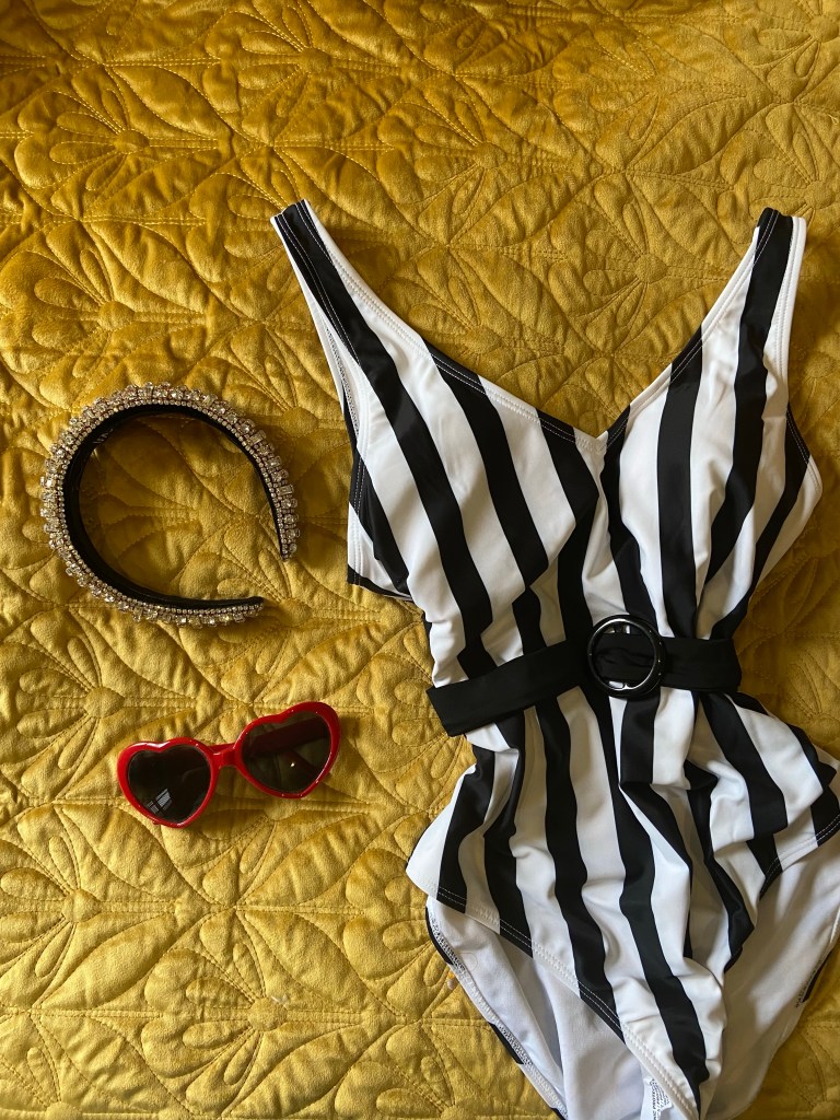 It’s a strange place to be, I don’t want a second hand costume, I also don’t have money to splurge, I don’t want to support Primark but I also need a costume. So I shopped around and ended up buying a black and white striped costume which fits nicely and I can still use it on my weight loss journey. It’s cute and classic and from Primark.