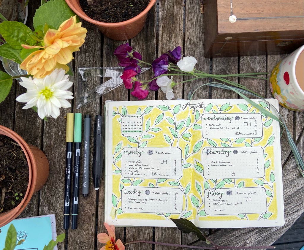 I find this very rewarding, drawing, doodling, colouring in and practicing my hand writing. I put a movie on and just zone out. I like organising my week and if I have any jobs to do it’s great. I can plan dinners, blogs and reels.