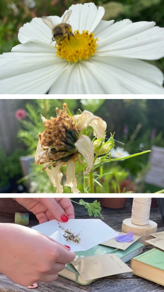 Part of my garden series is about planning for next year, investing in time but not spending too much money. I have some beautiful flowers growing and because it’s September they are starting to go to seed.