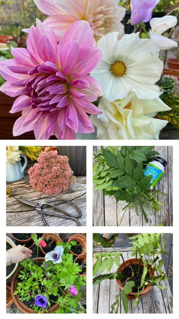 This morning I tried to take my 3rd try at cutting my wisteria, we will see if it takes, I would like just one white wisteria plant but I don’t mind trying. My garden now has 3 beautiful sedums growing so I want to try drying them out now they are in flower. Their reddy pink flowers are so pretty and there are plenty left to feed the bees and keep the garden in flower.