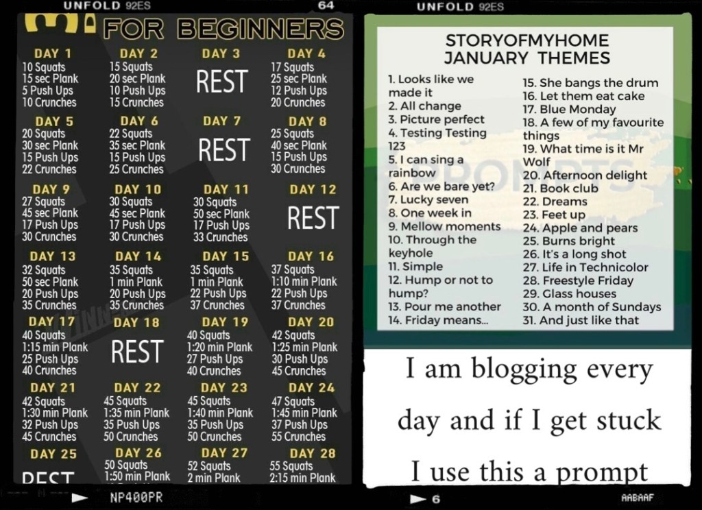 It’s January, start of a new year, each Monday is the start of a new week. A new month, you can challenge yourself at any time to do anything. I have given myself a few.