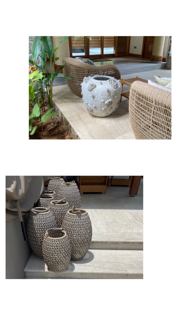 Everything is elegant and thoughtful. I honestly could have spend hours snapping beautiful vignettes. There is no empty spaces in this resort, collections of baskets shadow chairs, gold crab statues invite you in. Even the art works are from a local artist Alyssa Adam’s a watercolour artist I long to have in my collection.