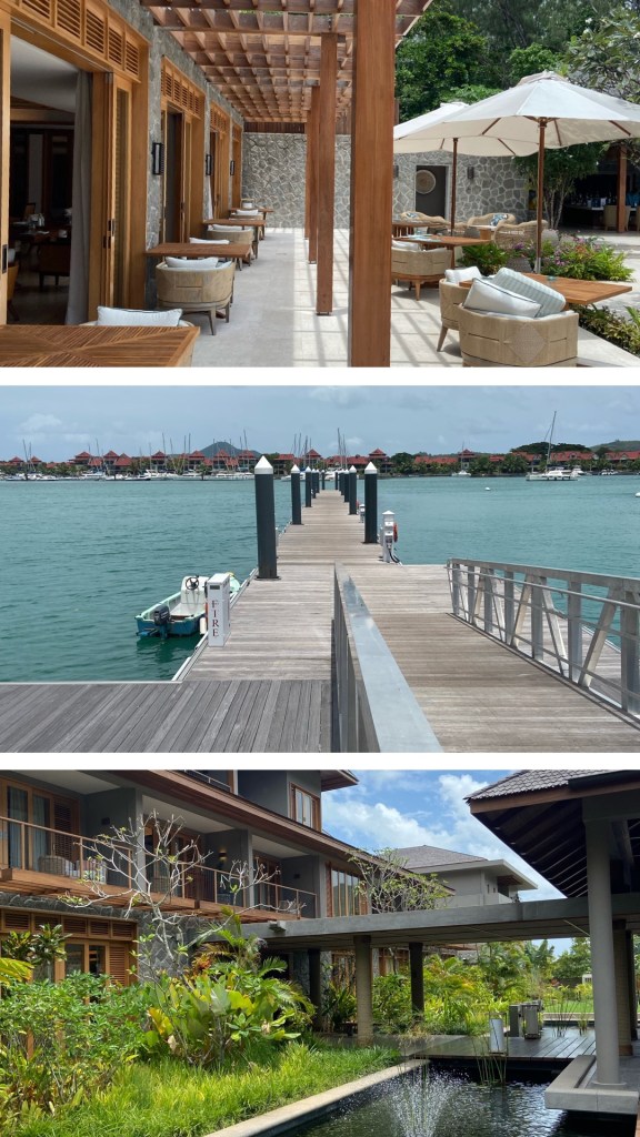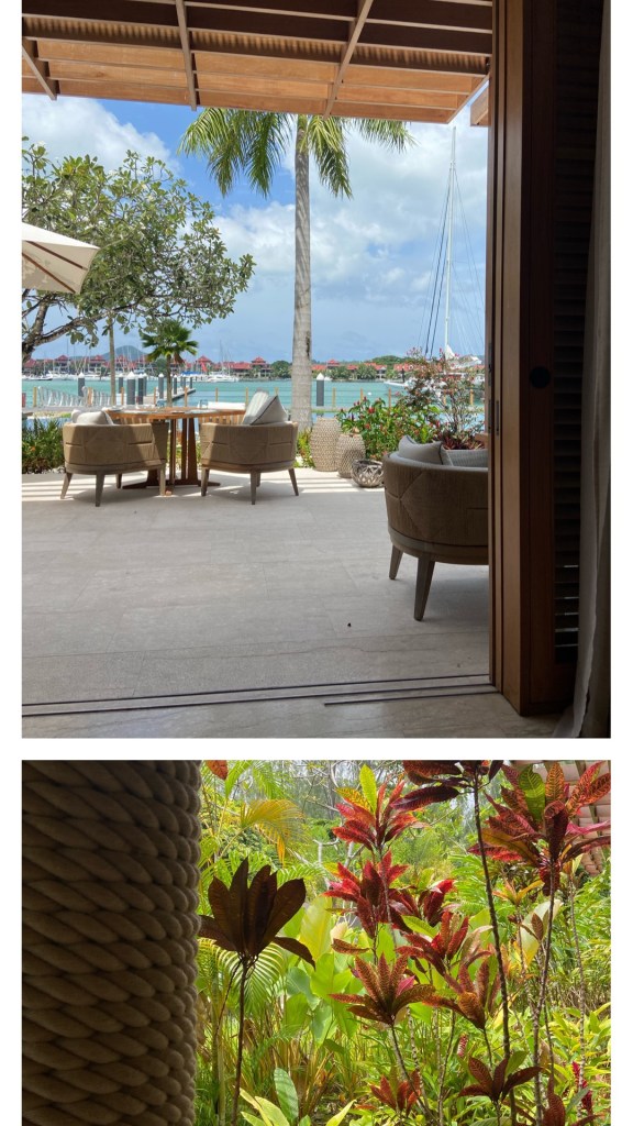 Let me introduce you to L’Escale Resort Marina & Spa on Mahe Seychelles. A 5 star resort facing Eden island and the marina, ideal if you want to park your yacht outside it. It’s not a large hotel more sprawling through the beautiful trees and gardens with infinity pools and private areas dotted around. It feels like escaping the world and Seychelles already feels like an escape. My friend Angie has all her meetings here because she says there is nothing like it.
