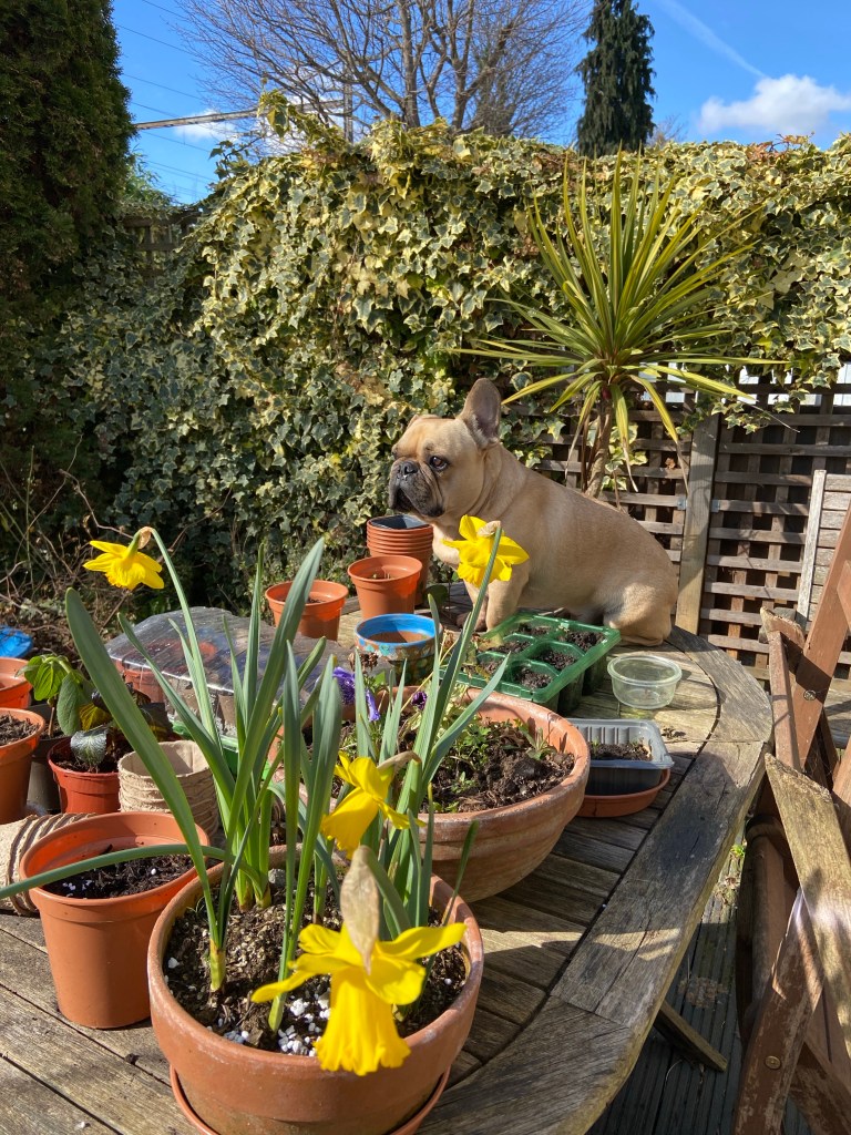 He still doesn’t trust me with the hose because I sprayed him with water a few times but otherwise he is alway there. I normally have a trusted cup of tea but if I ever do planting I can guarantee that I will get soil in it.