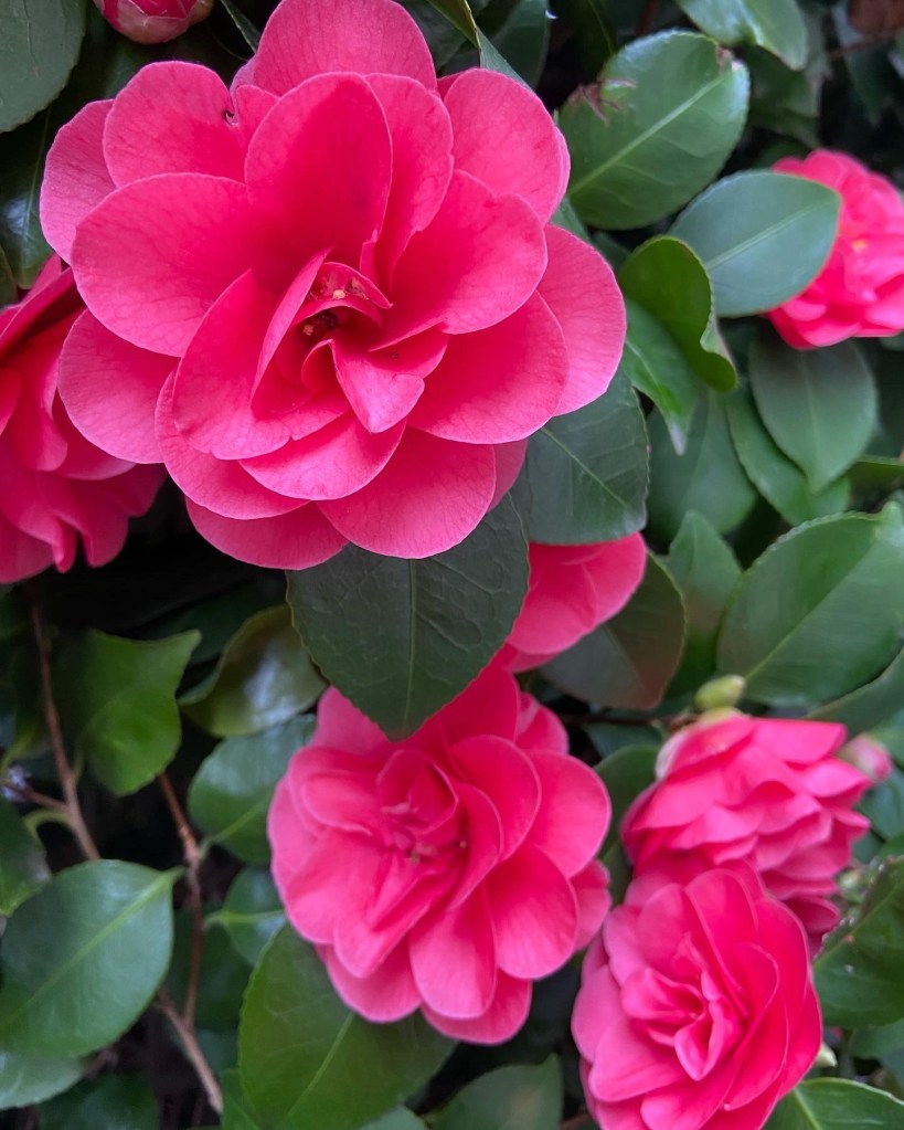 Painting the roses red….. my camellia is still in bloom. I know they are not roses and they are not red but every time I see them I hum that tune.