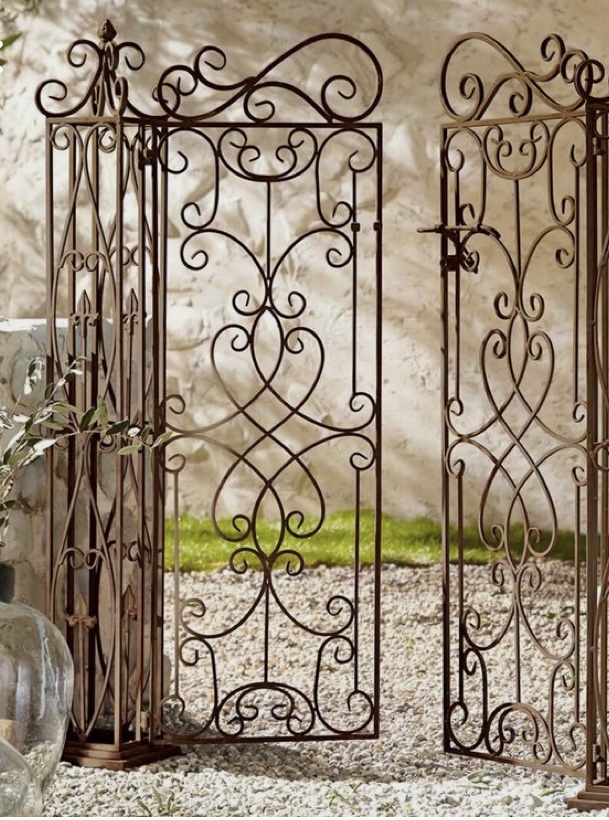 From talking to my dad, you runs a security company, having bits for people to climb over is a big no no. So all the pretty ones are out. Because no one makes a beautiful gate that is practical and at a reasonable price.