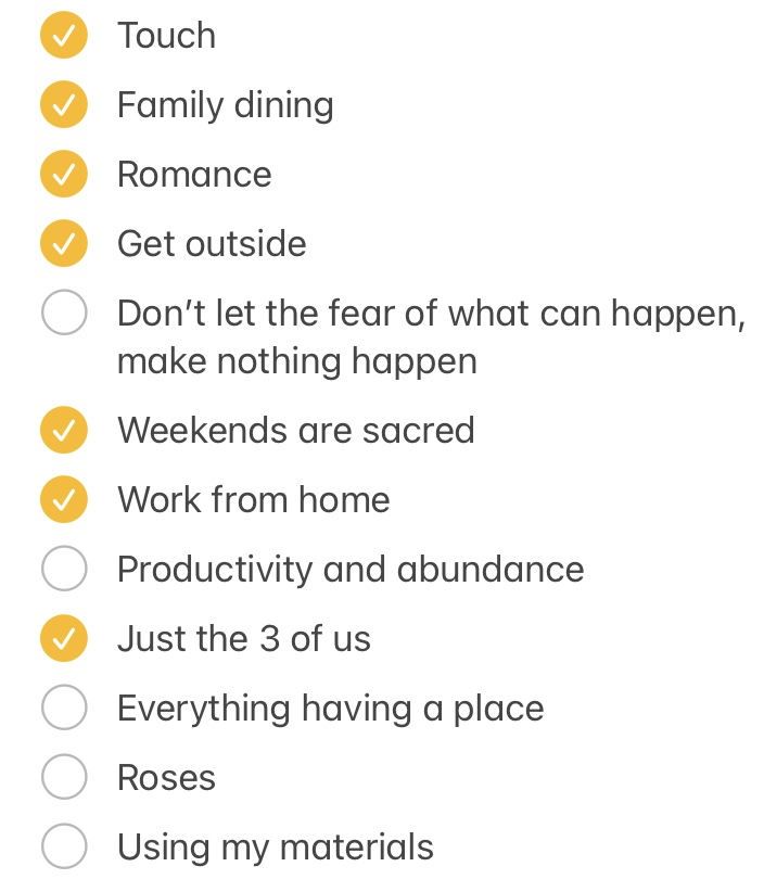 Touch and romance were definitely my favourite things on the list as well as family dining. We nailed “just the three of us,” we have spent lots of wonderful time together, so much so that I put it back on next years list.