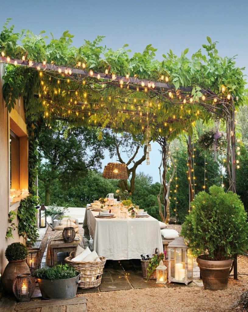 We already have a beautiful oak dining table that I want to put outside. I would love to build a pergola about this size, over Moroccan terracotta tiles with fairy lights citronella candles, growing clematis, roses and Jasmin up the posts. I want chandeliers, lanterns friends and family. With climate change we know the that summers will be hotter so creating shade is so important.