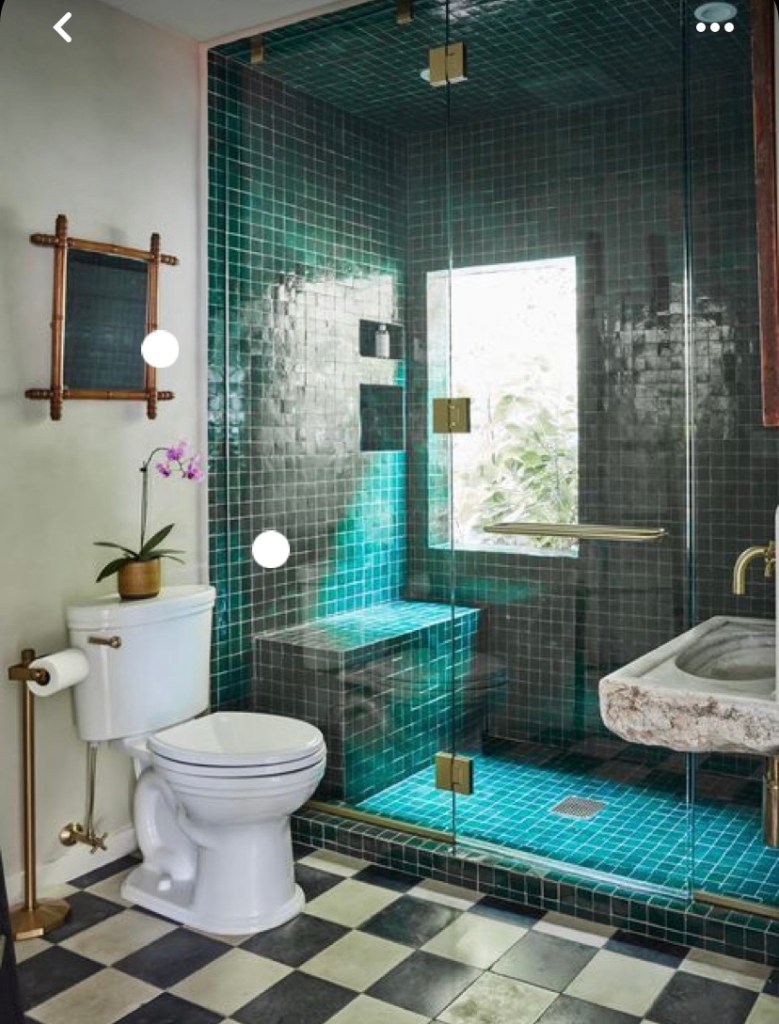 We have had quotes back from the crittall company and I still need to talk to the windows people. To get that installed so that we can get the bathroom done. The bathroom is too small to fit everything in but big enough to have a massive shower. So the plan is we create a beautiful green tiled box which is our shower, which means replacing the window with a 90cm width rather than a 130cm width. Below is my inspo it’s the wrong green and tile but I love that it’s a solid block of tile and colour. Just have to convince Gavin with will look incredible.