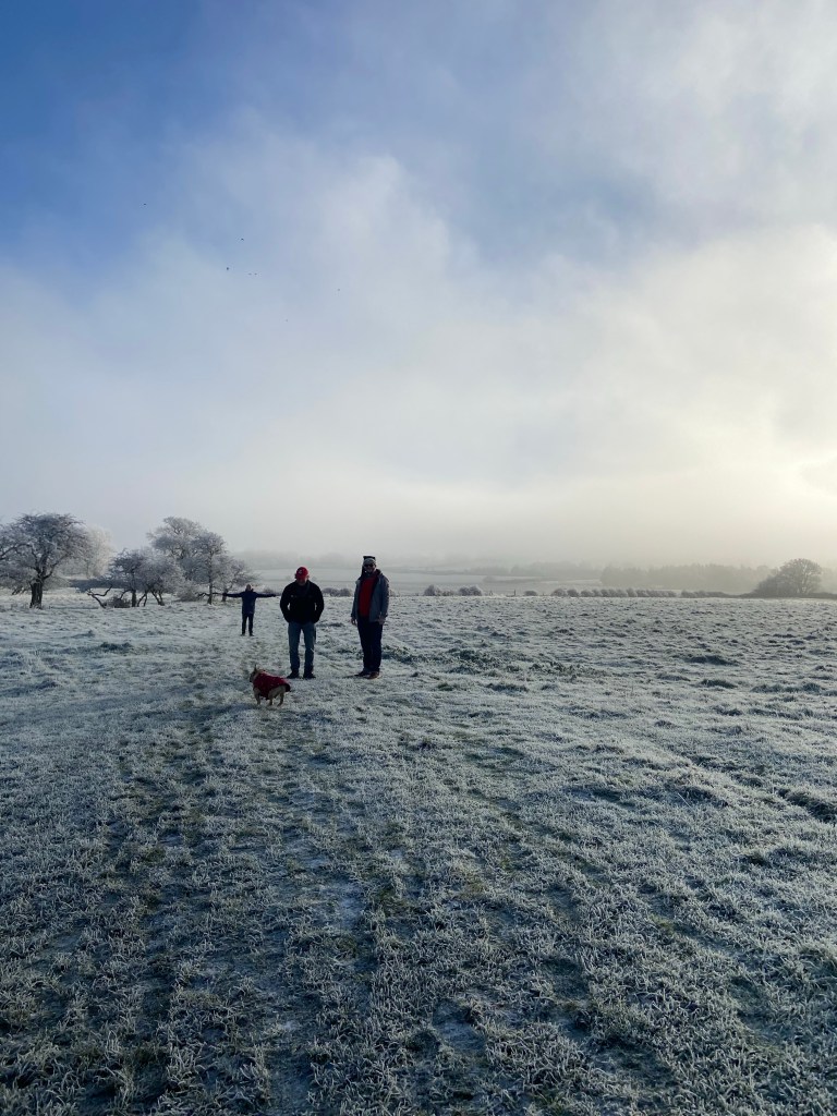 It didn’t stop us going for a very long walk on the frosted farmers land. The views were impressive and magical. As we walked we all warmed up but the ground was too spiky for frank and he often ended up being held. When it snowed over night he found the ground wonderful. but Franks favourite place was by the fire or curled up on a cushion.