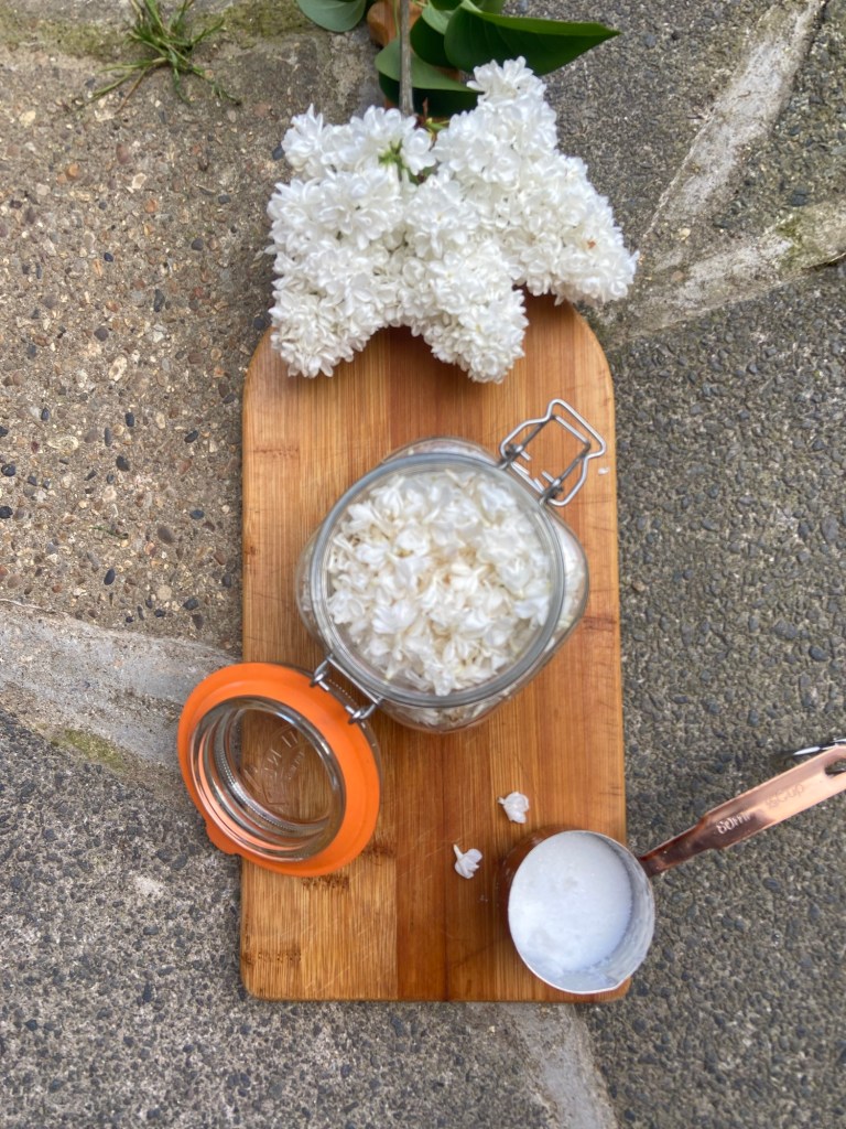 So I decided to make some lilac sugar. You can use it in baking or for cocktails, but I just made it so we would have some memory of the lilac tree if it doesn’t survive the move. My Rosemary hasn’t and my magnolia is in shock, so who knows if that will survive.