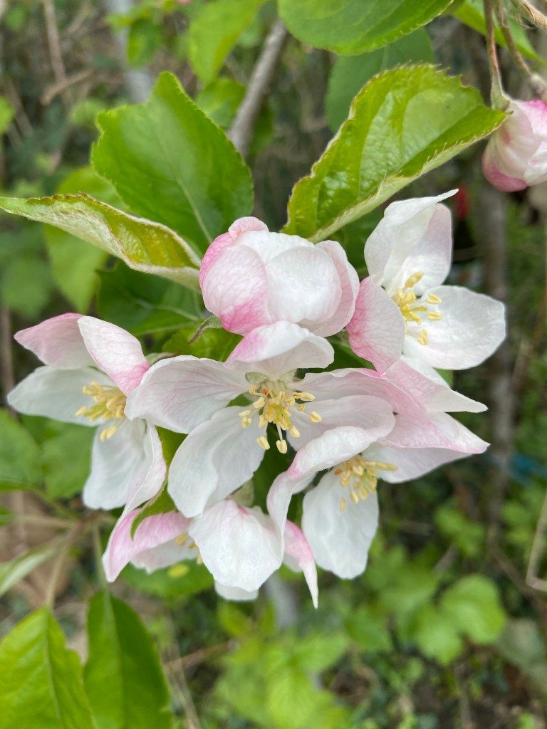 I am lucky. I have 3 small trees on my plot. We only had a handful of apples last year but the middle tree was completely covered in brambles. This year I pruned my trees right back even if it meant no apples I would like them to focus on growing strong and healthy, however last month all three had beautiful blossoms which means I may get apples of all of them! Who knows, it’s very exciting. I may invest in a plum tree next year.