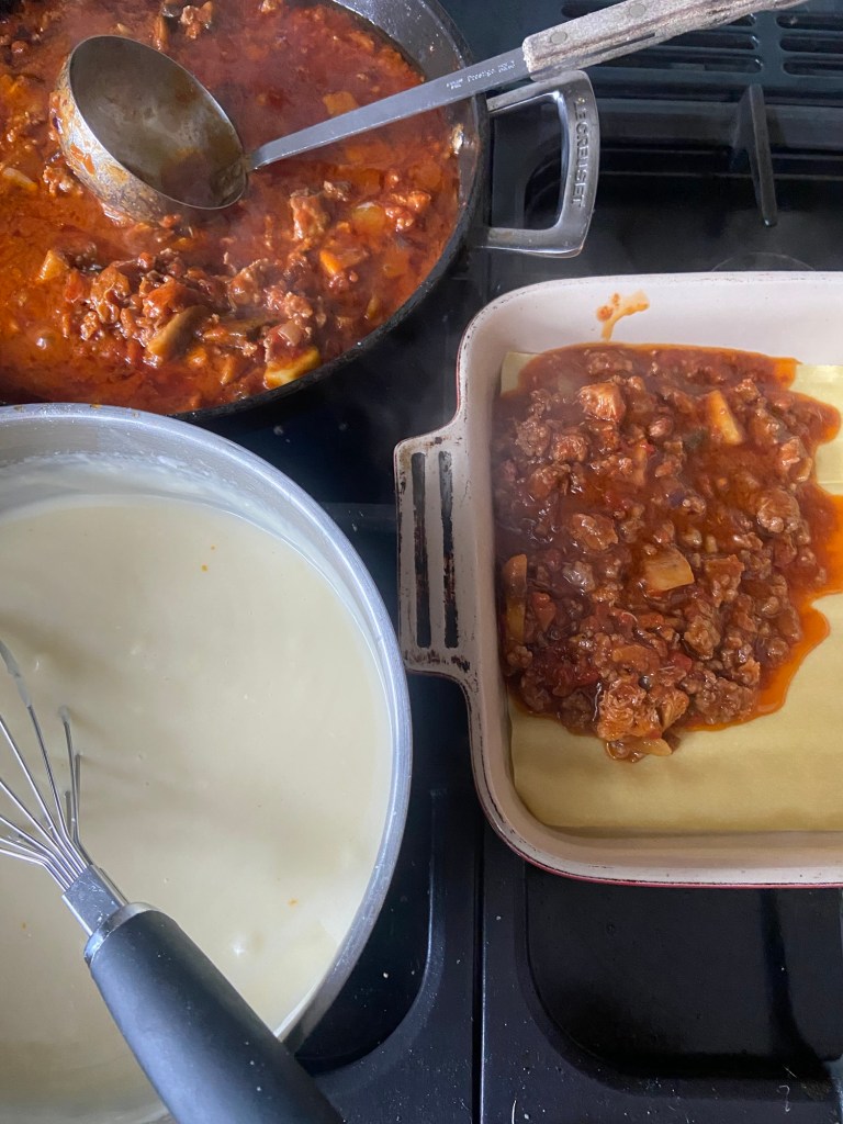 It’s a messy photo, I am a messy cook. I didn’t make the lasagne sheets but I did buy them fresh and had enough to make another lasagne so we can eat it in a few weeks as a quick and healthy homemade meal.